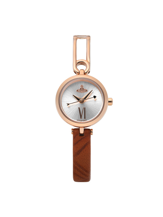 Vivienne Westwood Soho Ladies Quartz Watch with Silver Dial & Brown Leather Strap with Rose Gold Safety Pin Design VV200RSBR