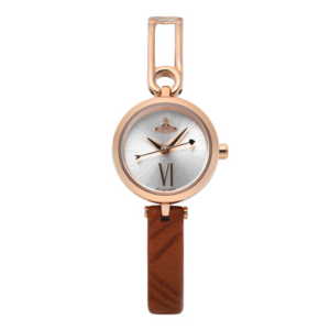 Vivienne Westwood Soho Ladies Quartz Watch with Silver Dial & Brown Leather Strap with Rose Gold Safety Pin Design VV200RSBR